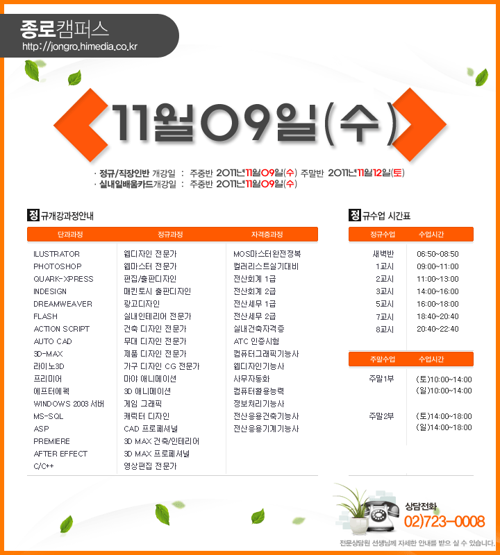 [정규개강] 2011년 11월 정규개강안내