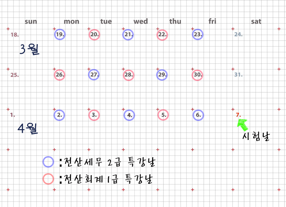 전산세무2급과 전산회계1급 강의 일정은 아래의 달력을 확인하시면 됩니다.