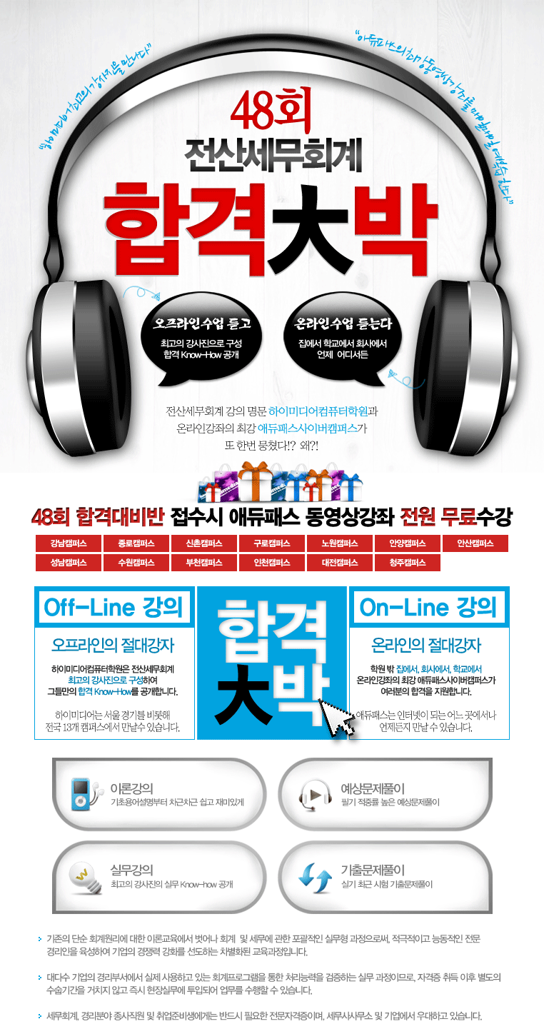 전산세무회계 강의 명문 하이미디어컴퓨터학원과 온라인강좌의 최강 애듀패스사이버캠퍼스가 또 한번 뭉쳤다!? 왜?!